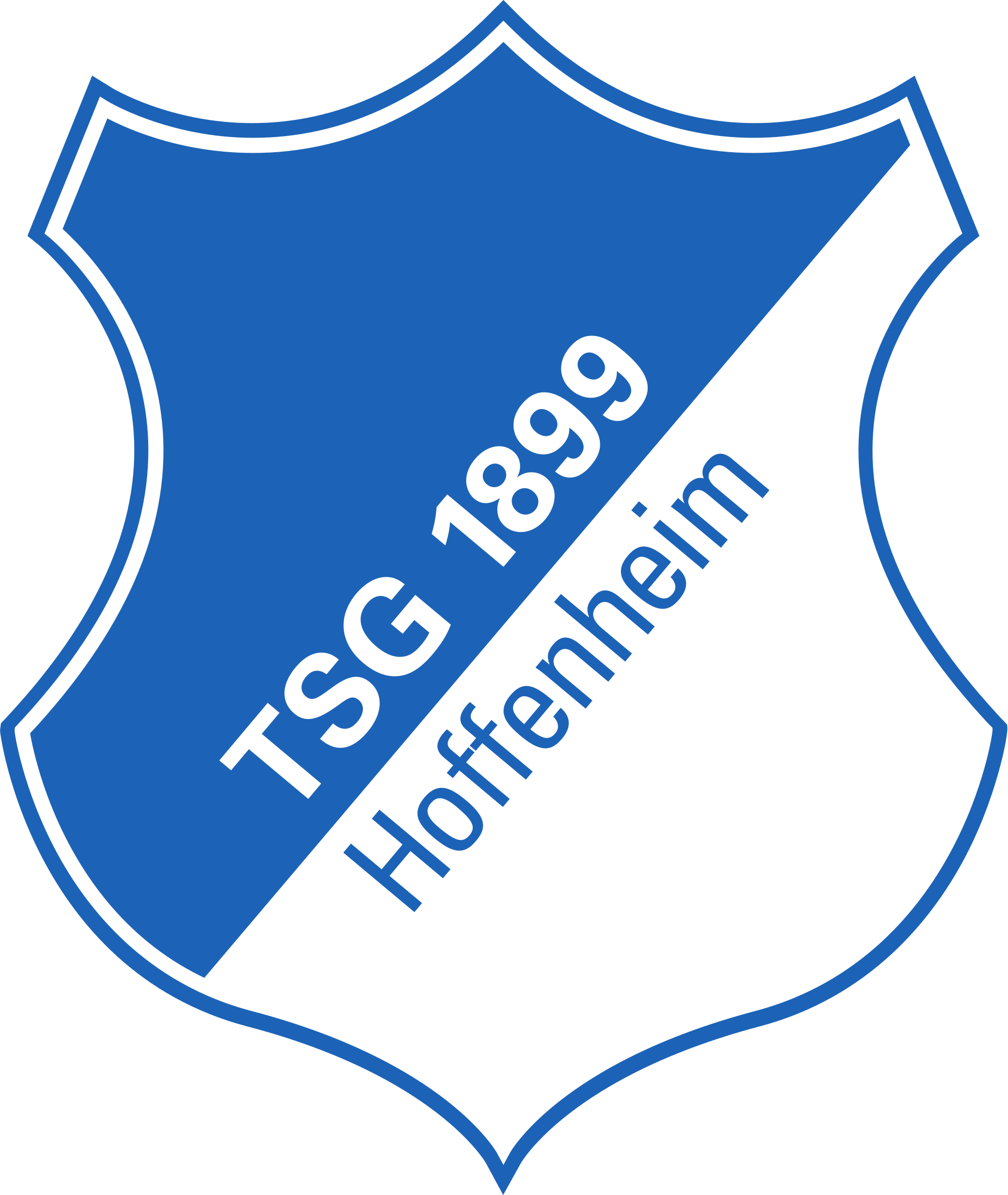 Hoffenheim – En sköld där ena halvan är blå och andra vit, där det enda som fyller upp emblemet är klubbnamnet. Ja, det är precis lika tråkigt som det låter. Att ”TSG 1899” och ”Hoffenheim” har olika tjocklek hjälper inte heller, gör om och gör rätt. Betyg: 1